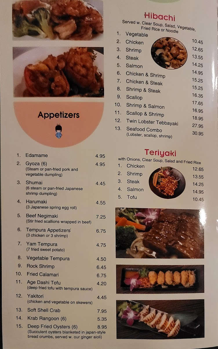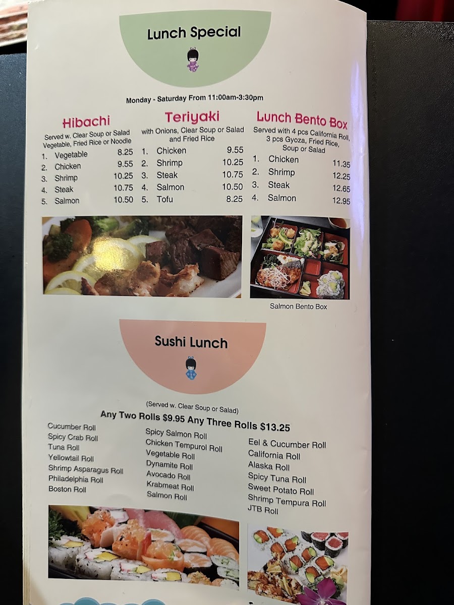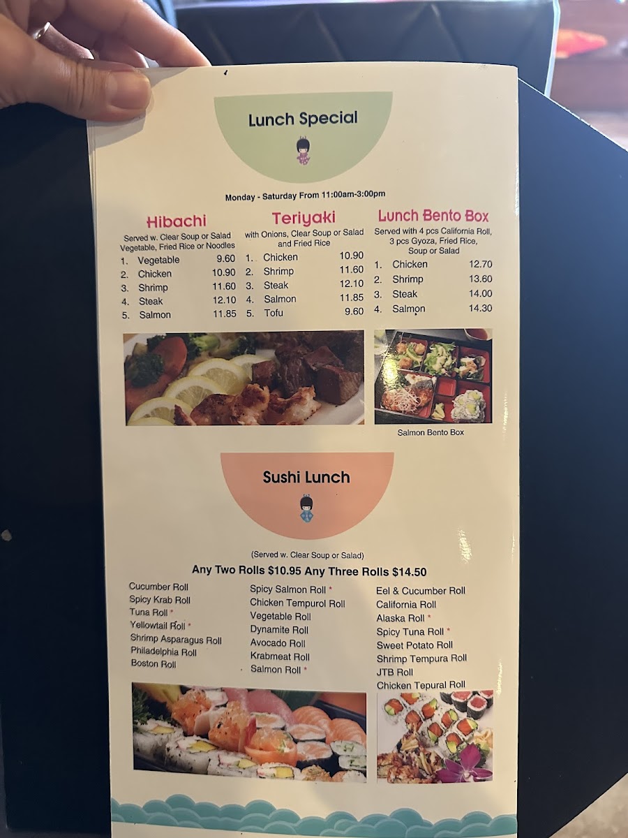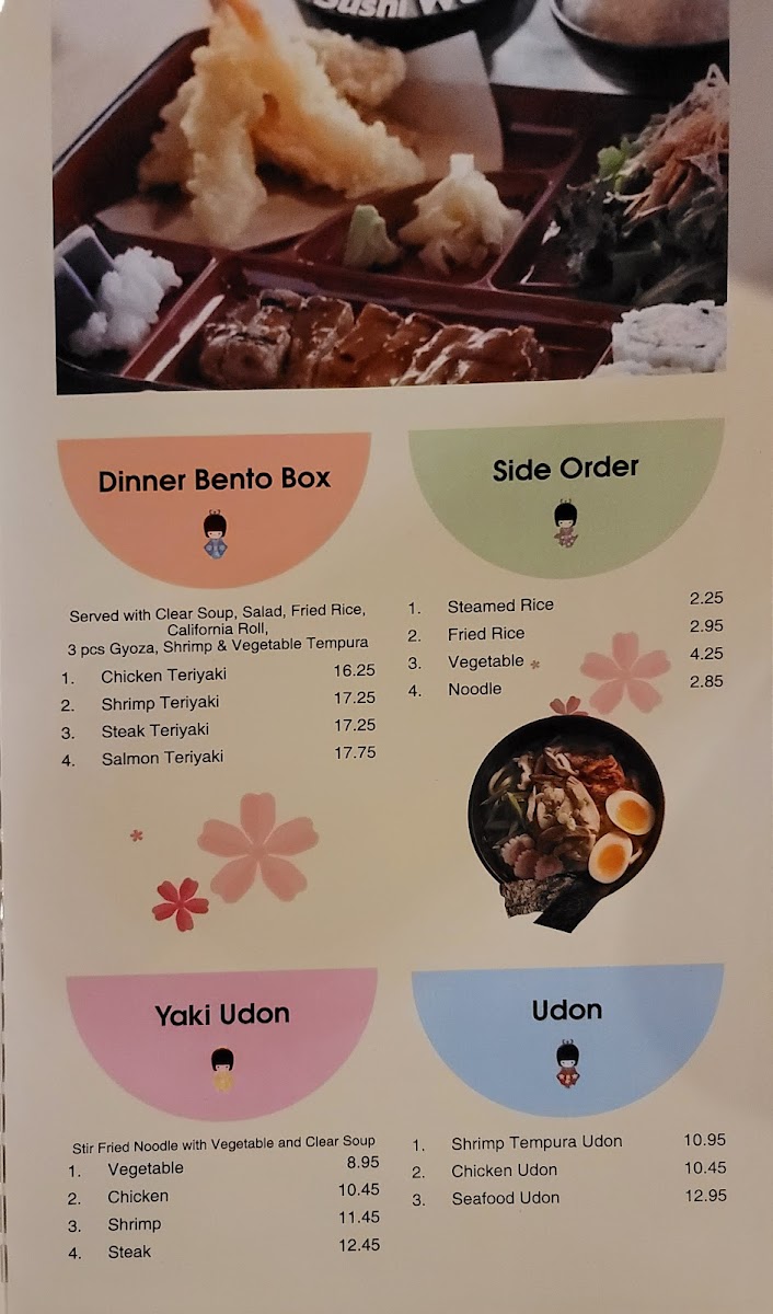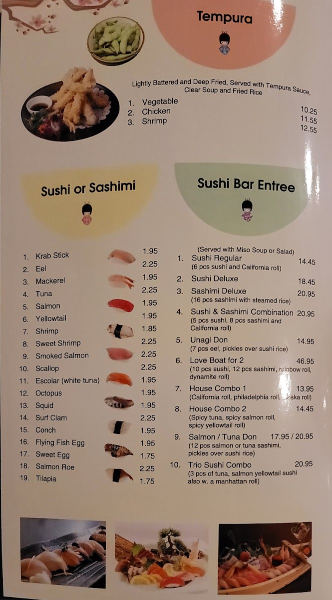 10 pcs sushi, 12 pcs sashimi, rainbow roll, dynamite roll.
